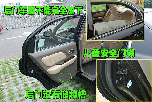 名馭后排車門并沒有配備和前門一樣的儲物槽,不太方便,同時配備了兒童安全門鎖。車窗在完全放下時,后門玻璃并不能完全放下,這樣充分考慮到了后排乘客的安全。