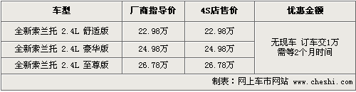 目前筆者了解到,全新索蘭托首批有黑色現(xiàn)車到店,但很快被選購一空。目前的銷售非;鸨,據(jù)銷售人員介紹,訂單已經(jīng)超過了200臺,現(xiàn)在購車雖然不再加錢,但是需要等2個月時間,訂金為1萬元,11月份才能正式交付使用。