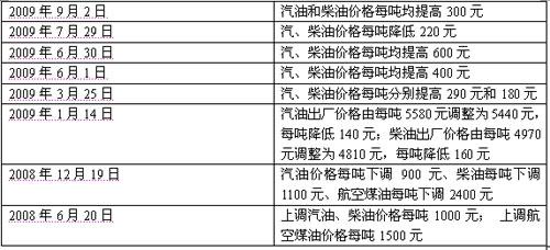 近2年成品油調(diào)價一覽