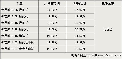 據(jù)4S店銷售人員介紹:目前新領(lǐng)馭全系可優(yōu)惠5000元。目前車源方面,個(gè)別車型無現(xiàn)車,預(yù)定需等3-4周時(shí)間,顏色集中在黑色。由于目前貨源不再緊張,有小幅優(yōu)惠是正常現(xiàn)象,此時(shí)購(gòu)買車輛比較合適。但新領(lǐng)馭目前銷售較好,所以不附贈(zèng)裝飾。