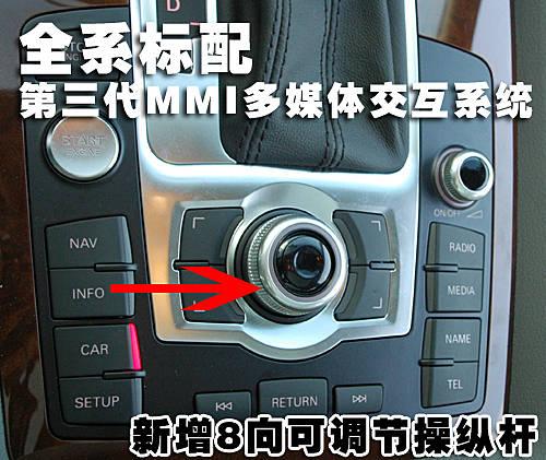 第三代MMI多媒體交互系統(tǒng)成為新奧迪Q7豪華配置中最大的亮點(diǎn)之一,它集合了三維立體導(dǎo)航系統(tǒng)、更加強(qiáng)大的多媒體娛樂(lè)功能和更加人性化的操作。位于換擋桿后方的第三代MMI多媒體交互系統(tǒng)操作終端充分考慮人機(jī)工程學(xué)原理,中央旋鈕上方增加的操作按鈕可進(jìn)行8方向操作,在導(dǎo)航界面和DVD播放時(shí)更加便于使用者實(shí)現(xiàn)目標(biāo)功能。
