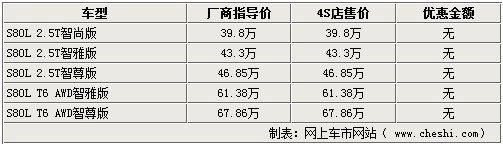 據(jù)4S店銷售人員介紹,目前國(guó)產(chǎn)2010款S80L全系車型已經(jīng)到店,處部分顏色無車需要消費(fèi)者訂車,訂金為5萬元;除此之外全系車型基本可以滿足購(gòu)車需要。2010款車型中,有三款車型因增配而在價(jià)格上相比09款車型有所提升。
