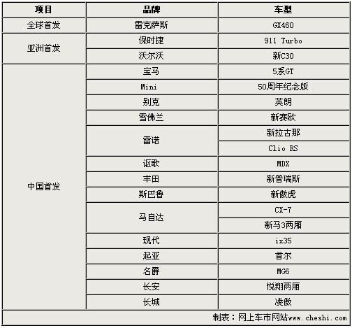 2009廣州車展已于今日正式開幕,本屆車展將有德系、美系、日系、韓系以及自主品牌等共計27款新車集中上市發(fā)布。這其中不僅包括全球首發(fā)車型雷克薩斯GX460,而且還有保時捷911 Turbo和寶馬5系GT等多款亞洲和國內(nèi)首發(fā)車型。通過以下的詳實解析,讓我們一睹它們到底具備怎樣的風(fēng)采。