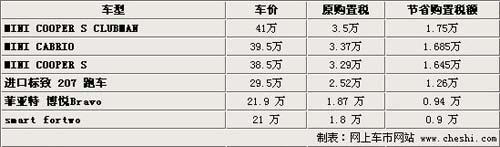 而針對市面上常見的一些符合1.6升以下排量購置稅優(yōu)惠政策的車型,我們也進行了一些試算。比如購買一臺進口MINI轎車,該車的排量在1.6升價位為40萬元左右。如果您在2009年12月31日以后購買該車,那么僅購置稅部分就要多負擔25%也就是8750元左右。但是對于一臺0.8升排量售價在3萬元左右的奇瑞QQ來說,2009年12月31日以前購買或是2010年1月1日購買的購置稅金額差別僅為650元。所以是否趕在2009年12月31日以前購買1.6升以下排量轎車,還是應該根據(jù)您個人的實際需求,以及購買車型的價位而定。