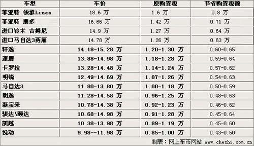 二.售價20萬元以下熱銷車型 09年購置稅優(yōu)惠金額
