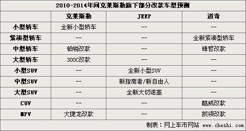 繼意大利汽車制造商菲亞特收購克萊斯勒后,在未來12至18個(gè)月內(nèi)將進(jìn)行較大的戰(zhàn)略調(diào)整,多款全新的車型規(guī)劃將陸續(xù)出臺。全新一代克萊斯勒300C轎車和和2011吉普大切諾基越野車首當(dāng)其中,此外在未來18個(gè)月內(nèi)還將有5款全新改款車型推出。