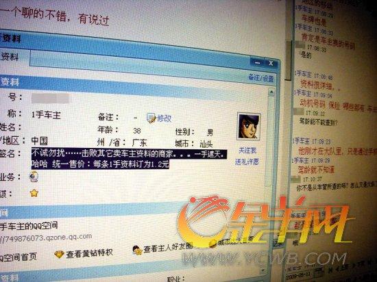 “只要你給我一個(gè)車牌號(hào),我就能告訴你車主的資料!”QQ聊天時(shí),網(wǎng)友“1手車主”毫不遮掩地告訴記者,他是做售賣車主資料中介生意的。果真有這么神嗎?為了驗(yàn)證真假,記者嘗試了一回,結(jié)果讓記者大吃一驚。
