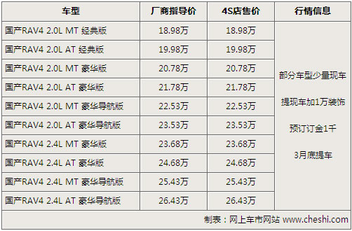 筆者從北京地區(qū)經(jīng)銷(xiāo)商處了解,目前豐田RAV4現(xiàn)車(chē)供應(yīng)仍然比較緊張,僅有2.0AT豪華版和2.4AT豪華版有黑色,銀灰色現(xiàn)車(chē)供應(yīng)。其他款均需要預(yù)訂,現(xiàn)在訂車(chē)的話至少節(jié)后才能提車(chē)。同時(shí),消費(fèi)者提現(xiàn)車(chē)的話需要加1萬(wàn)元裝飾或者現(xiàn)金,裝飾可由消費(fèi)者自主選擇。個(gè)別店甚至加1.5萬(wàn)元左右。