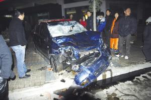 昨天上午10:00,金壇市交巡警大隊三樓會議室內(nèi),“1·19”重大交通事故情況通報會在這里舉行,當?shù)毓簿终瘒涝铝志拖嚓P(guān)案情及時向公眾進行披露。警方初步查明,19日晚9時30分左右,司機李羅斌醉酒駕駛牌號為蘇DPQ607雪佛蘭小型轎車沿丹荊路由東向西行駛至無星家園路段時,與蔣女士夫婦的自行車發(fā)生刮擦,李在駕車向南打方向過程中又先后撞上道路北邊由東向西步行的四名高中學生,在將四人撞飛后,車子最后駛上道路南側(cè)人行道板撞上一售樓處廣告墻后停止。
