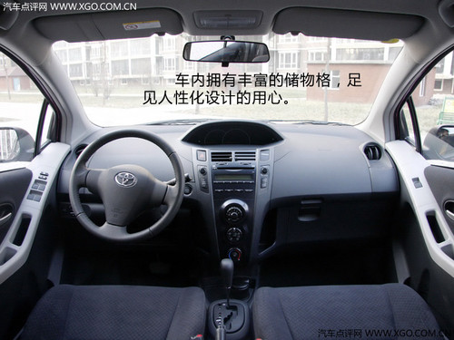 雅力士的內(nèi)飾設(shè)計(jì)是典型的豐田NBC風(fēng)格——中置儀表盤,這使得方向盤前看上去十分空曠,也會(huì)讓初次使用的用戶感到稍有不適。雅力士車內(nèi)最讓人稱道的地方在于其設(shè)計(jì)了大量的儲(chǔ)物格,對(duì)于總苦于手邊零碎小玩意沒處放置的人來說,無疑是最貼心的設(shè)計(jì)了。