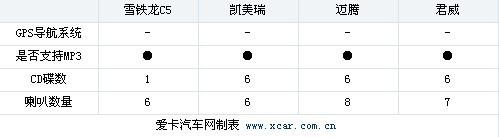 比較遺憾的是四款車都未配備GPS導(dǎo)航系統(tǒng),消費(fèi)者只能另掏腰包。而邁騰1.4T DSG車型在音響方面總共配備了8個喇叭,同級比較罕見。