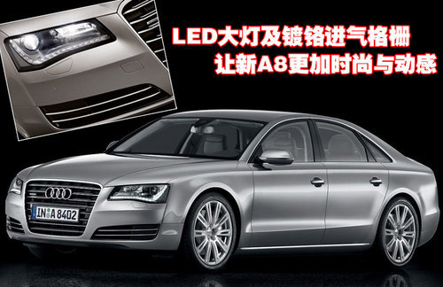 從奧迪新A8車型的前臉可以看出,LED自適應(yīng)前大燈、圓形前霧燈、獨(dú)立牌照支架以及鍍鉻進(jìn)氣格柵等升級讓其更加時尚與動感。