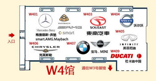 W4館將有沃爾沃、寶馬、MINI、克萊斯勒、英菲尼迪、東南、杜卡迪中國(guó)、梅賽德斯-奔馳、smart、AMG、邁巴赫等11個(gè)品牌參展,主要亮點(diǎn)車(chē)型包括沃爾沃新S60、華晨寶馬5系加長(zhǎng)版、寶馬VED概念車(chē)、MINI Countryman、克萊斯勒新大切諾基、英菲尼迪QX56、奔馳全新E級(jí)敞篷以及奔馳2011款R級(jí)等。