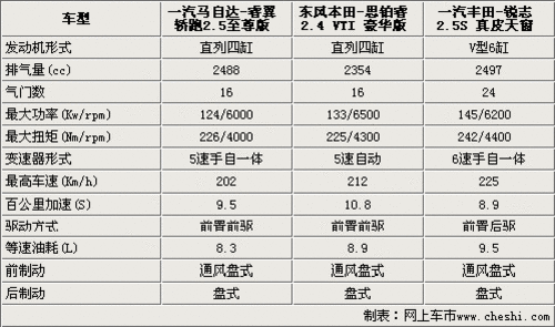 通過(guò)以上橫向?qū)Ρ,可以看出睿翼轎跑、思鉑睿和銳志的排量都在2.4這個(gè)區(qū)間,并且都具備了日系發(fā)動(dòng)機(jī)傳統(tǒng)的特點(diǎn):性能良好、油耗經(jīng)濟(jì),但是發(fā)動(dòng)機(jī)形式卻完全不同。從官方公布的等速油耗來(lái)看,睿翼轎跑的油耗要低于本田思鉑睿和豐田銳志,這與一汽馬自達(dá)強(qiáng)調(diào)的輕量化設(shè)計(jì)車(chē)身是分不開(kāi)的。銳志采用了V型6缸發(fā)動(dòng)機(jī),該發(fā)動(dòng)機(jī)運(yùn)用了雙VVT-I技術(shù),因此在動(dòng)力方面明顯要優(yōu)越于睿翼轎跑和思鉑睿,同時(shí)再加上銳志為后驅(qū)車(chē)型,再加上百公里加速僅為8.9秒,就從這兩點(diǎn)就也可以看出銳志是一款偏運(yùn)動(dòng)的車(chē)型。在變速器方面,銳志略勝一籌,配備了手自一體式6速自動(dòng)變速箱,思鉑睿則是5速自動(dòng)變速器,是三款車(chē)型中配置較低的。三款車(chē)型的制動(dòng)系統(tǒng)都是前通風(fēng)盤(pán)后實(shí)心盤(pán)。