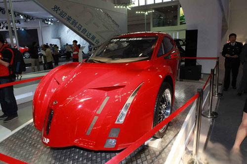 永源汽車將本屆北京車展的重頭戲放在第一次亮相中國市場的概念電動車Alias身上,Alias是一款經(jīng)濟型高速電動汽車,采用ZAP設計的最新電動系統(tǒng),電機的輸出功率最大可達37Kw,轉速高達8000rmp,最高車速為每小時達112Km,續(xù)駛里程為241Km,并配備了車載充電機,可選擇家用電源充電模式或快速充電模式進行充電。