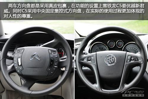 由于此次對(duì)比的車型是新君威2.4L 旗艦版和雪鐵龍C5 2.3L尊雅型,所以在有些配置上C5要低于新君威,這是可以理解的必定有價(jià)格的差別。