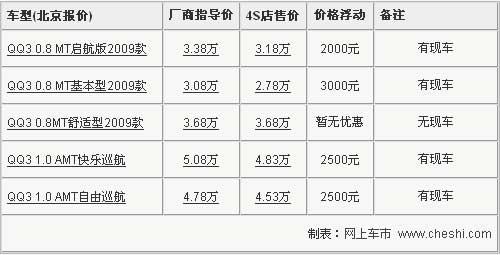 據(jù)奇瑞汽車4S店銷售人員介紹,目前奇瑞QQ30.8排量的三款車型只有舒適版車型無現(xiàn)車,基本型和啟航版車型分別有3000元和2000元的價(jià)格優(yōu)惠,1.0自動(dòng)檔車型也有2500元的現(xiàn)金優(yōu)惠。雖然降價(jià)幅度沒有前一陣子大,但還有額外的驚喜,到店購車在原有現(xiàn)金優(yōu)惠的基礎(chǔ)上還可以贈(zèng)送價(jià)值1000元的裝飾。