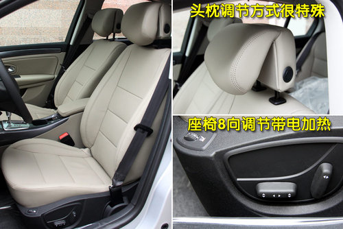 新拉古那的座椅為米色真皮材質(zhì),坐墊較為柔軟,乘坐上也非常舒適,但是在側(cè)向支撐力方面就會感到有些欠缺,另外腰部支撐的調(diào)節(jié)位于座椅內(nèi)側(cè),在調(diào)節(jié)時我們也需要扭動身體來完成。而新拉古那的頭枕設(shè)計是我最喜歡的,可以大范圍調(diào)整前后位置,可以另駕乘更為舒適。