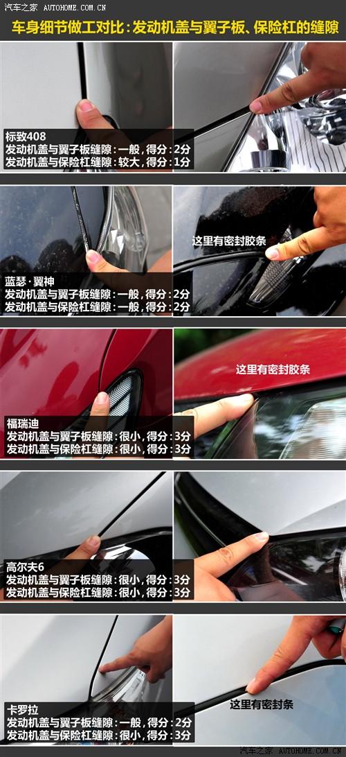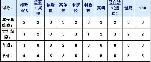2、發(fā)動機蓋與大燈的接縫。十款車相比的話,縫隙較小的3分;有些車縫隙中有密封條,視為縫隙較小;縫隙一般大的得2分,縫隙較大的得1分。