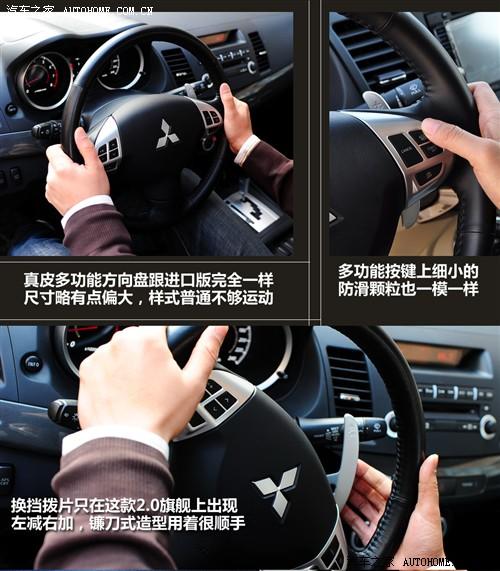 除了這兩樣標(biāo)準(zhǔn)配置以外,翼神還有兩個(gè)亮點(diǎn),第一個(gè)即高配車型上的儀表盤,中央顯示屏色彩相當(dāng)炫目,非常漂亮!不光是視覺(jué)效果好,可以顯示的行車信息也是相當(dāng)?shù)呢S富,可謂應(yīng)有盡有;第二個(gè)則是換擋撥片,在2.0升旗艦版車型上面提供了與進(jìn)口Lancer EX相同的撥片,而且在實(shí)際使用中的反應(yīng)很靈敏迅速。不過(guò)要想真正追求駕駛樂(lè)趣,顯然手動(dòng)擋車型才能滿足。換擋行程很短,有一定的吸入感,既緊湊又不會(huì)生硬,這種感覺(jué)對(duì)于年輕人來(lái)說(shuō)肯定夠誘惑,雖然說(shuō)這款來(lái)自愛(ài)信的變速箱并不像CVT一樣是進(jìn)口的。