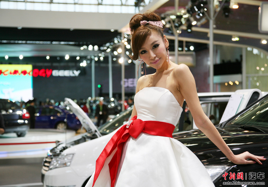 北京車展群芳競艷:靚模一襲白裙秀香肩
