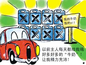 或許,當人類發(fā)明出不吃飯也能長大個的方法時,也就離無需耗能的永動機時代不遠了。不過現(xiàn)在,我們還需要吃飯,也還需要燒石油。石油價格飆漲只是給我們敲響了一聲警鐘,讓我們麻木的環(huán)保神經(jīng)稍微受了點刺激,完全憑漲價來控制石油的消耗量簡直就是異想天開。當然,僅憑我們個人的力量并不能改變什么,但如果每個人都能形成一種環(huán)保意識,我想就不會有那么多人追求大排量,也不會有那么多人追求大空間。試想,當有一天有錢都沒法加到油的時候,一輛排量再大、再有面子的車,也會顯得格外可笑。(陳鑫欣)