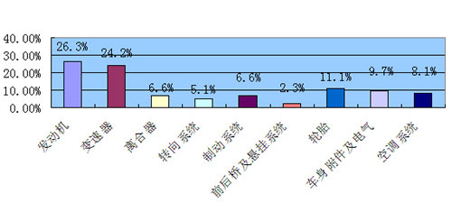 引發(fā)汽車用戶投訴的質量問題構成比率
