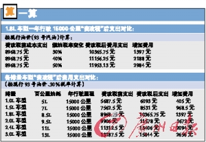 業(yè)內(nèi)預(yù)測,國家開征燃油稅后稅率將在30%~50%之間。以該車主的1.8L排量車型計(jì)算,假設(shè)一年行駛里程為15000公里左右,平均油耗為8.5升/百公里左右,每年需加1275升油。按照目前廣州93號(hào)油零售價(jià)每升6.25元計(jì)算,車主每年在油費(fèi)上需要支出7968.75元,加上養(yǎng)路費(fèi)1000元,目前每年這部分的總花費(fèi)為8968.75元。