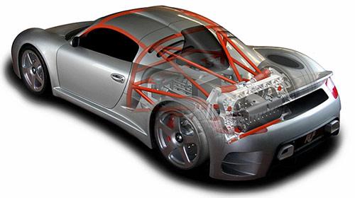 經(jīng)RUF重新打造的3.7L水平對置六缸雙渦輪增壓發(fā)動機,最大功率輸出700馬力/7000轉(zhuǎn),扭矩峰值890牛•米/4000轉(zhuǎn);并采用六速順序式變速箱,中置后驅(qū)的驅(qū)動形式;由靜止加速到100km/h僅需3.2秒,極速更是達到了375km/h。正如之前所說,若你認為這只是一款深度改裝的保時捷,那便大錯特錯了。打開CTR3的引擎艙蓋后,你會發(fā)現(xiàn)這里擁有大量經(jīng)典的賽車設計:管狀式車架、多連桿懸掛、水平減震器等等……這些都是RUF與Multimatic of Canada共同開發(fā)的產(chǎn)物。