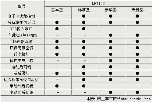 在舒適型方面,力帆320的配置也很到位,入門級(jí)車型也配備了MP3輸入端口,高配車型還配備CD音響,采用四聲道揚(yáng)聲器系統(tǒng),使娛樂(lè)性更加出色。這款車的行李箱內(nèi)部配備燈光照明,方便夜晚的使用。而且該系列大部分車型也都配備了電動(dòng)后雨刷、遙控中央門鎖、擾流板和高位制動(dòng)燈。其中,兩款高配車型的外后視鏡采用電動(dòng)調(diào)節(jié),使用起來(lái)更加方便。