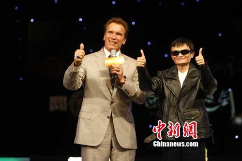 施瓦辛格稱,作為加州州長的職務今年任期到期,下一步計劃,他可能會重返影視界,但目前還未確定。在論壇結束時,施瓦辛格送給馬云一件神秘禮物——一副墨鏡和黑色夾克,并打趣說馬云就是中國版的終結者。(完)