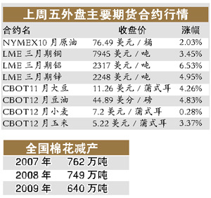 棉花價格的大幅上漲有多方面因素的推動,國內棉花減產是漲價的基礎。同時國際市場上棉花價格的上漲也給國內棉花價格帶來推動力,國際棉花價格自今年7月份開始累積漲幅已經達到35%。