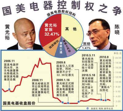 綜觀整個事件,失去人身自由的黃光裕隔空應(yīng)戰(zhàn)自如,只擁有1.47%國美股權(quán)的陳曉“以小博大”,對抗擁有32.47%股權(quán)的控制權(quán),看似不可為,實(shí)則都在國美特有公司規(guī)則下合法騰挪