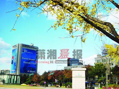 寫著G20首爾峰會“跨越危機,攜手成長”主題的大樓。圖/記者肖中潔