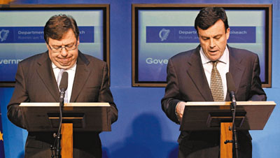 愛爾蘭總理考恩表示,援助計劃包括兩部分:首先當(dāng)?shù)劂y行業(yè)需要縮小規(guī)模,出售部分非核心資產(chǎn);其次是落實4年緊縮計劃,目標(biāo)在2014年前削赤150億歐元,將財赤占國內(nèi)生產(chǎn)總值(GDP)比例由目前32%減至歐盟規(guī)定的3%。