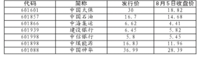 圖:昨天收盤價在發(fā)行價以下大盤股一覽 圖片來源:京華時報