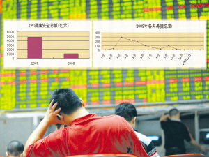 從2008年1月1日至今,上證綜指從高點(diǎn)5522點(diǎn)跌至12月12日的1954點(diǎn),下跌幅度超過60%。市場深幅調(diào)整不僅使投資者“巨虧”,同時(shí)也讓IPO規(guī)模大幅縮水。