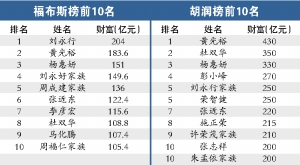 繼本月初胡潤“率先”公布《2008胡潤百富榜》之后,記者昨日在《福布斯》中文版上也看到了其《2008年中國富豪榜》,或許刻意強調(diào)與胡潤的區(qū)別,或許這一個月來全球資本市場動蕩影響確實不小,福布斯的榜單,不僅前10名與胡潤座次“大變樣”,就連“身家”也是相差甚遠。福布斯昨日披露的首富劉永行在胡潤榜單中僅列第5,胡潤的首富黃光裕也被福布斯放在第2的位置上,而財富總額也由胡潤榜中的430億元驟降至183.6億元。另外,楊惠妍在胡潤榜里財富總額達330億元,但在福布斯榜里是151億元。福布斯制榜人指出,富豪的財產(chǎn)是根據(jù)最新股價得出的。