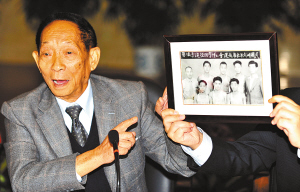 袁隆平展示自己在西南大學時的老照片記者 冉文 攝