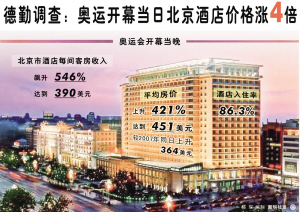 業(yè)內(nèi)人士表示,總體來看,8月25日、26日前,北京四、五星級的酒店基本維持奧運期間的價格,但是26日后,四星、五星酒店均有大幅度跳水,有的酒店價格只有之前的1/3,甚至1/4。