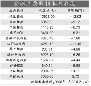 2009年的第一個交易日,道瓊斯指數(shù)曾大漲258點(diǎn),報收于9034.69點(diǎn),然而,這也成為截至目前的最高點(diǎn)。在隨后的近三周中,道瓊斯指數(shù)不斷下跌,本周二更是暴跌4%,收于7949點(diǎn)。即便是周三道指反彈3.51%,今年以來,道指最大跌幅也已高達(dá)9%,納斯達(dá)克指數(shù)累計最大跌幅高達(dá)8.7%。