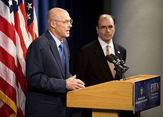 被接管之后,房利美和房地美將由美國國會(huì)今年夏天創(chuàng)建的負(fù)責(zé)管理這兩家機(jī)構(gòu)的新機(jī)構(gòu)——聯(lián)邦住房金融署來管理,兩家機(jī)構(gòu)原首席執(zhí)行官已被限令離職,新領(lǐng)導(dǎo)人已被任命。保爾森說,“兩美”的最終結(jié)構(gòu)將由國會(huì)以及下一屆政府來決定。