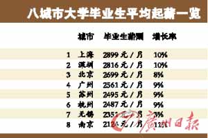 在廣州就業(yè)的大學(xué)畢業(yè)生,今年的薪酬起薪平均為2561元/月,在全國位居第四,相比去年增長(zhǎng)了9%。