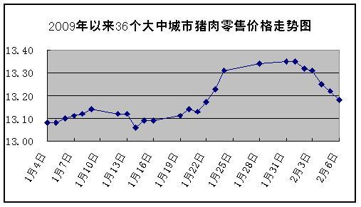中新網(wǎng)1月19日電 據(jù)國家發(fā)展改革委價格監(jiān)測中心監(jiān)測,上周(2009年2月1日~2009年2月6日,下同)全國36個大中城市集市、超市豬肉(精瘦肉)平均零售價格每500克為13.27元,與春節(jié)前一周(2009年1月19日~2009年1月24日,下同)相比上漲0.68%。