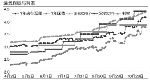 從央行與商業(yè)銀行的互動以及資金的供需均衡來看,加息也應該是合理的。發(fā)行定向票據(jù)和提高準備金率實際上減少了銀行的盈利空間,因此加息則對銀行而言可以起到補償作用。最近提高準備金率而隨后沒有加息,但是,央票的利率迅速上升在一定程度上補償了銀行利潤損失。未來一個月,如果央行要保持18.5%以下的貨幣增速,在貨幣乘數(shù)穩(wěn)定的情況下,12月必須提高一次準備金率,那么央行應該順勢加息一次;否則,央票利率肯定要上升,重復11月的過程,其表現(xiàn)就是央行所說的市場行為。