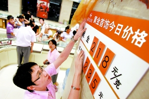 兩三天一個價,近來頻繁變動的京城金價讓零售賣場里的固定價簽來不及“應付”,幾乎失去了作用。一種即時顯示黃金、鉑金飾品當日價格的動態(tài)顯示牌今天開始亮相。據(jù)了解,這種掛牌顯示貴金屬價格的標注方式已經(jīng)在發(fā)改委備案,將在全市推廣,逐步取代柜臺上的固定價簽。對于消費者來說,今后將更多地習慣金價的“多變”:不同時間購買金飾品的價格可能會相差數(shù)百元。