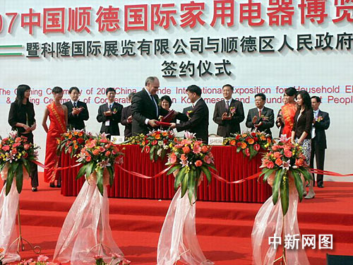 記者在展會(huì)上看到,德國(guó)科隆國(guó)際展覽有限公司與廣東順德區(qū)政府已簽署合約,從2008年開(kāi)始,德國(guó)科隆將著力把廣東順德家電展打造成具有代表性的國(guó)際家電展會(huì)。
