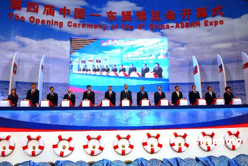 中新網(wǎng)10月28日電 第四屆中國-東盟博覽會今天上午在廣西南寧國際會展中心開幕。中國國務(wù)院副總理曾培炎、柬埔寨首相洪森、老撾總理波松、越南總理阮晉勇、文萊王儲穆赫塔迪•比拉等五國領(lǐng)導(dǎo)人出席博覽會開幕式。