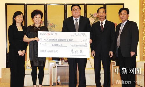 為及時讓捐款早日用于災(zāi)民, 13日由陳經(jīng)緯先生夫人向中央政府駐港聯(lián)絡(luò)辦呈交支票,聯(lián)絡(luò)辦主任高祀仁接受捐款時表示,非常感謝陳經(jīng)緯先生及經(jīng)緯置地有限公司的慷慨捐助,幫助國家救助災(zāi)區(qū)。至此,一向熱心社會公益事業(yè)的陳經(jīng)緯先生多年來在內(nèi)地用于救災(zāi)、扶貧、教育等社會公益事業(yè)的捐款共達(dá)7000多萬元。