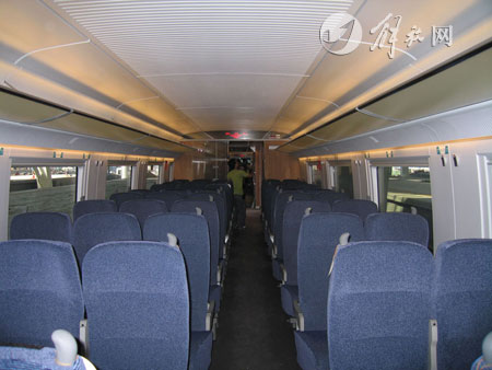 坐上列車,座椅猶如飛機(jī)經(jīng)濟(jì)艙座椅,前有可放下的桌子、椅子也可往下躺,同時(shí)還可以360度旋轉(zhuǎn)。每列京津城鐵均掛8節(jié)車廂,每節(jié)車廂都設(shè)置了寬敞的衛(wèi)生間。雖然從0到350公里/小時(shí)只需要幾分鐘,但由于車窗設(shè)計(jì)了減速玻璃,大多人還是感覺不出來車速,而且設(shè)計(jì)師在設(shè)計(jì)時(shí)還更多地考慮了安全性與舒適性,因而在行車過程中,旅客根本不需要帶安全帶,還可以自由走動(dòng)。抬頭一看車廂兩側(cè)的顯示屏,卻可以驚喜地發(fā)現(xiàn)車速已達(dá)334公里/小時(shí)了。